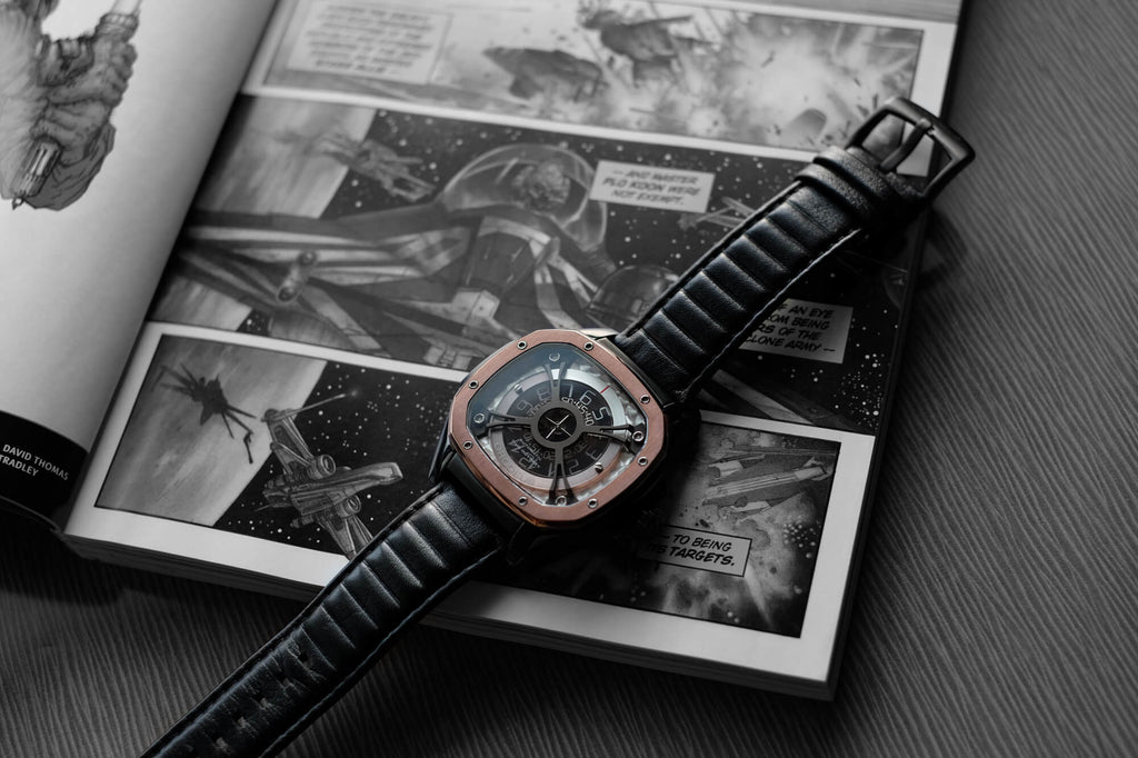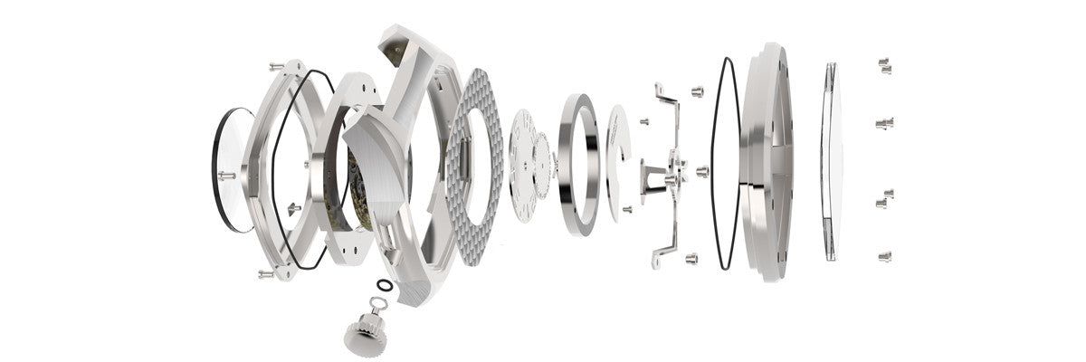 The retro-futurism inspired collection melds a science fictional theme with modern watch design. Inspiration from space vessels thought up in classic science fiction, shows in the complexity of the detailing on the OD-1 watches. A distinct aesthetic of symmetry and sophistication is present in the dial comprising no less than 7 components.